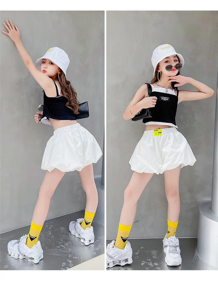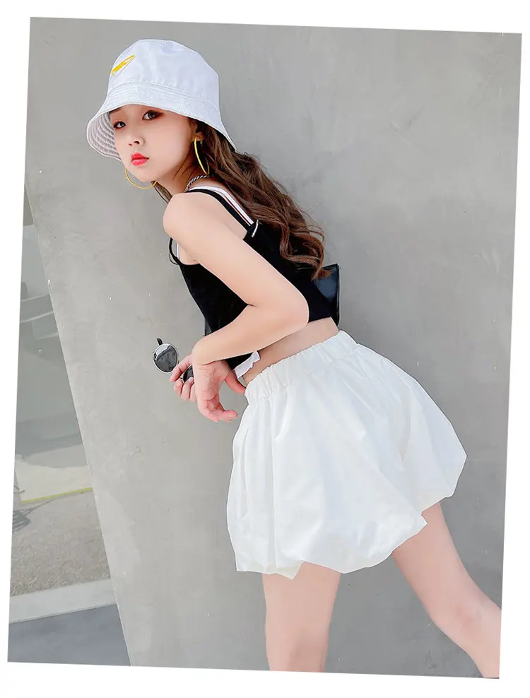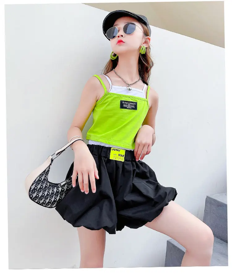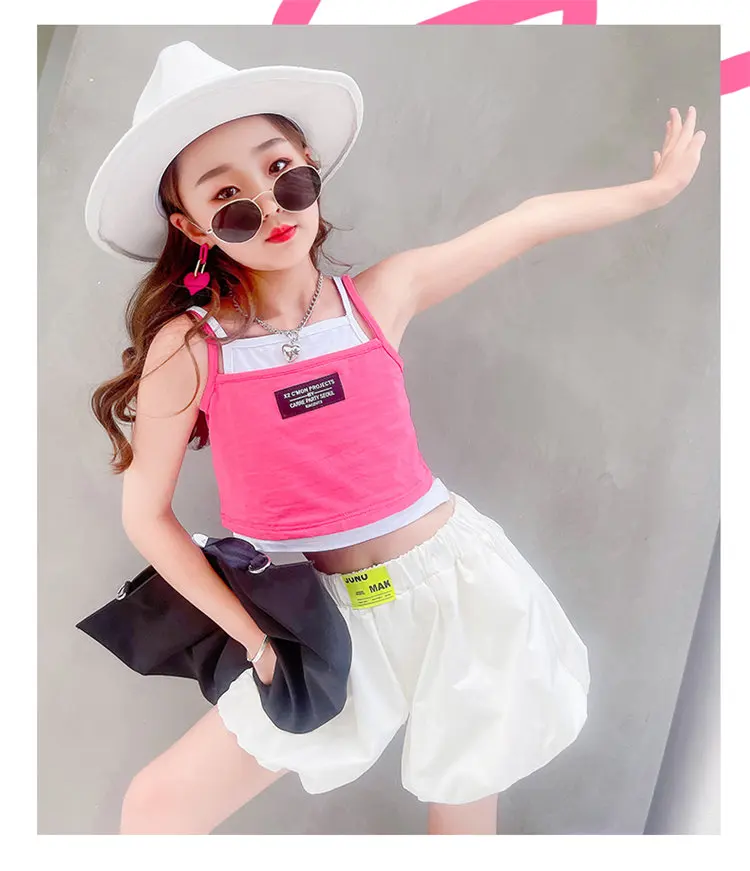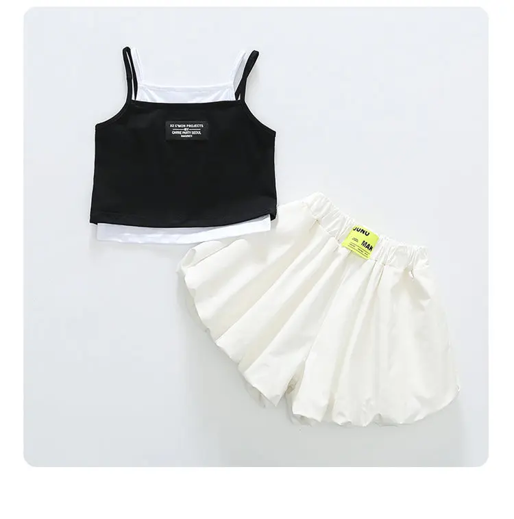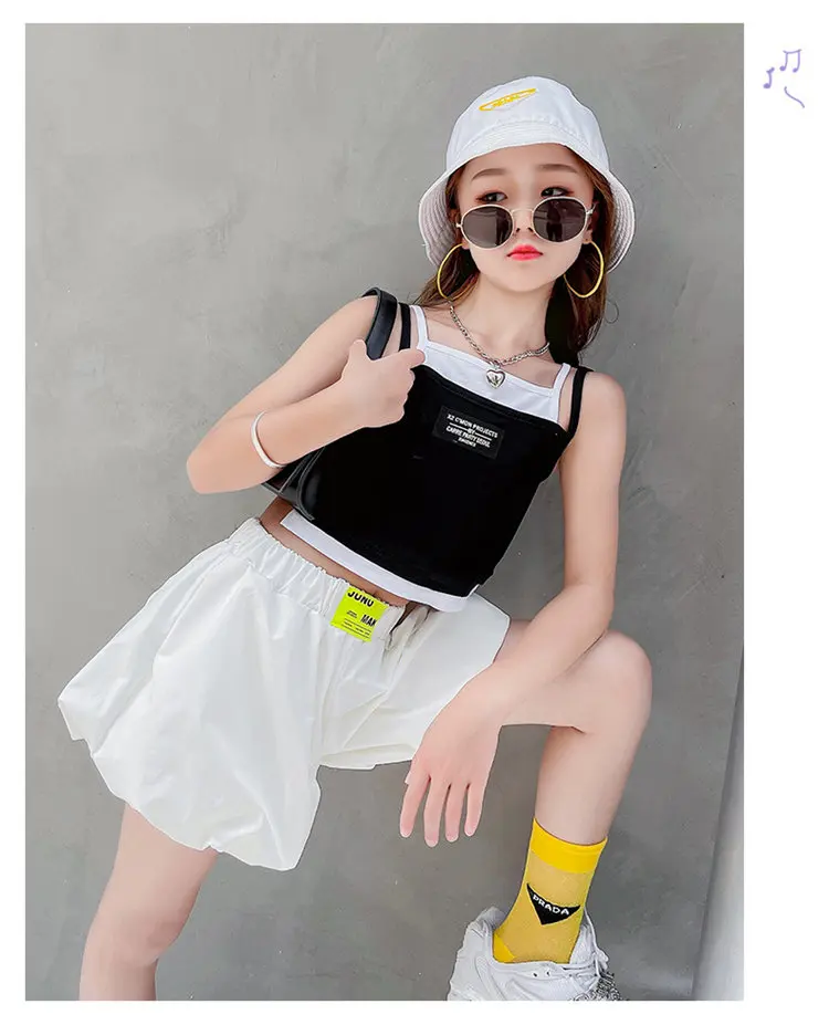 Teenage Girls Fashion Clothing Sets Summer Fake Two Pieces Vest+Shorts 2PCS Children&