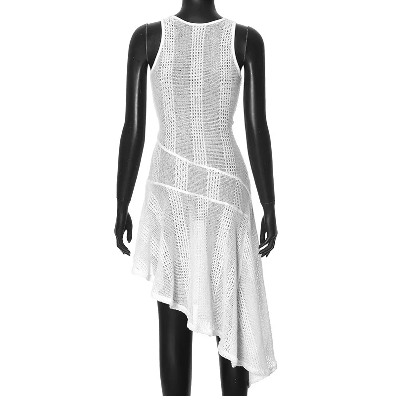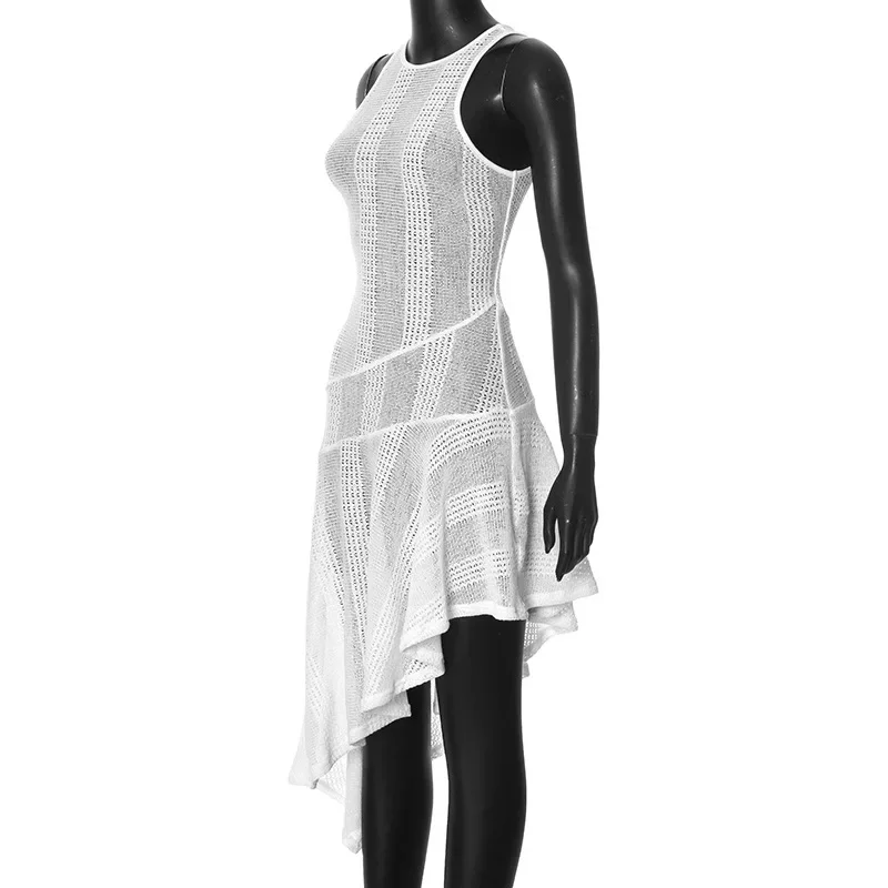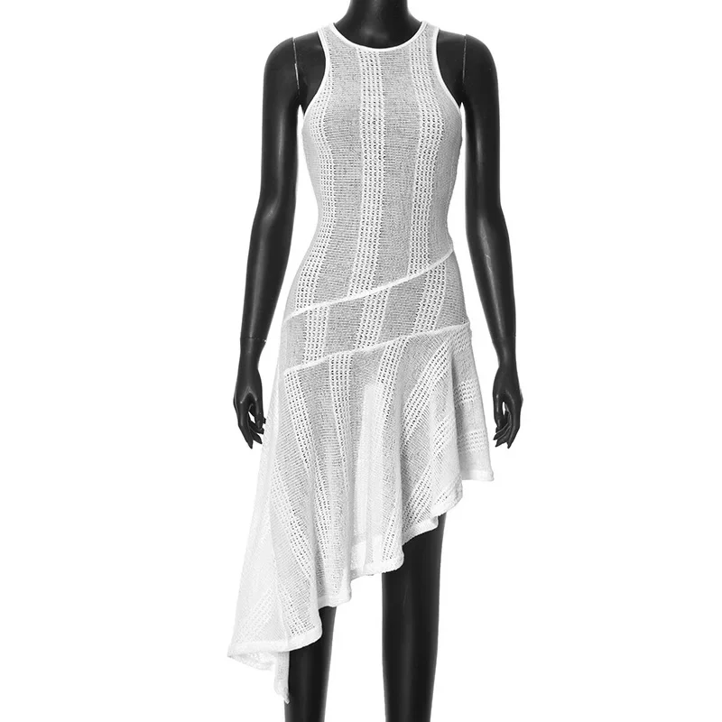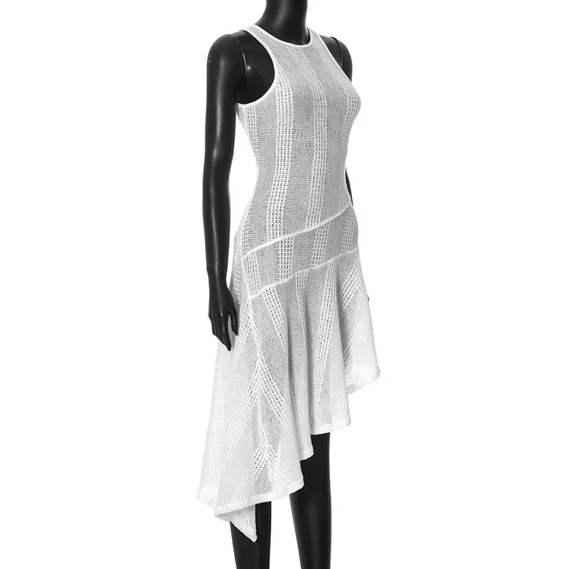 Solid Slim Dress For Women One-Piece See-Through White Dress Sexy Fashion Women Clothing O-Neck Sleeveless Y2k Ropa De Mujer