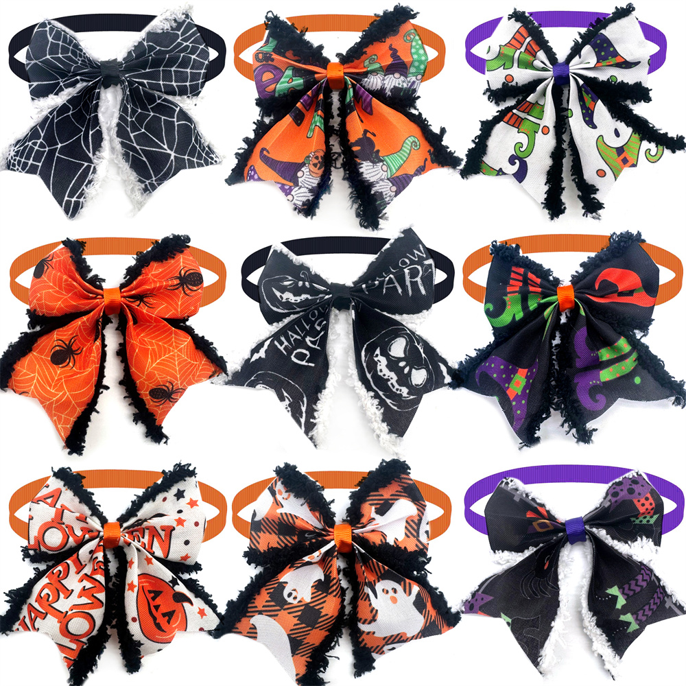 Halloween Dog Pets Accessories Bow Tie with Fur Edge Collar Pets Supplies Dog Grooming Product Dog Bow Tie Necktie