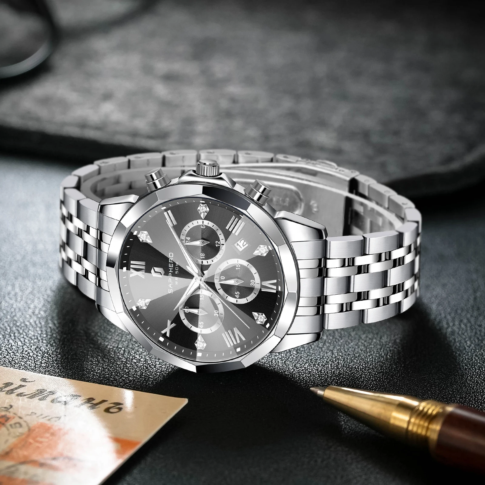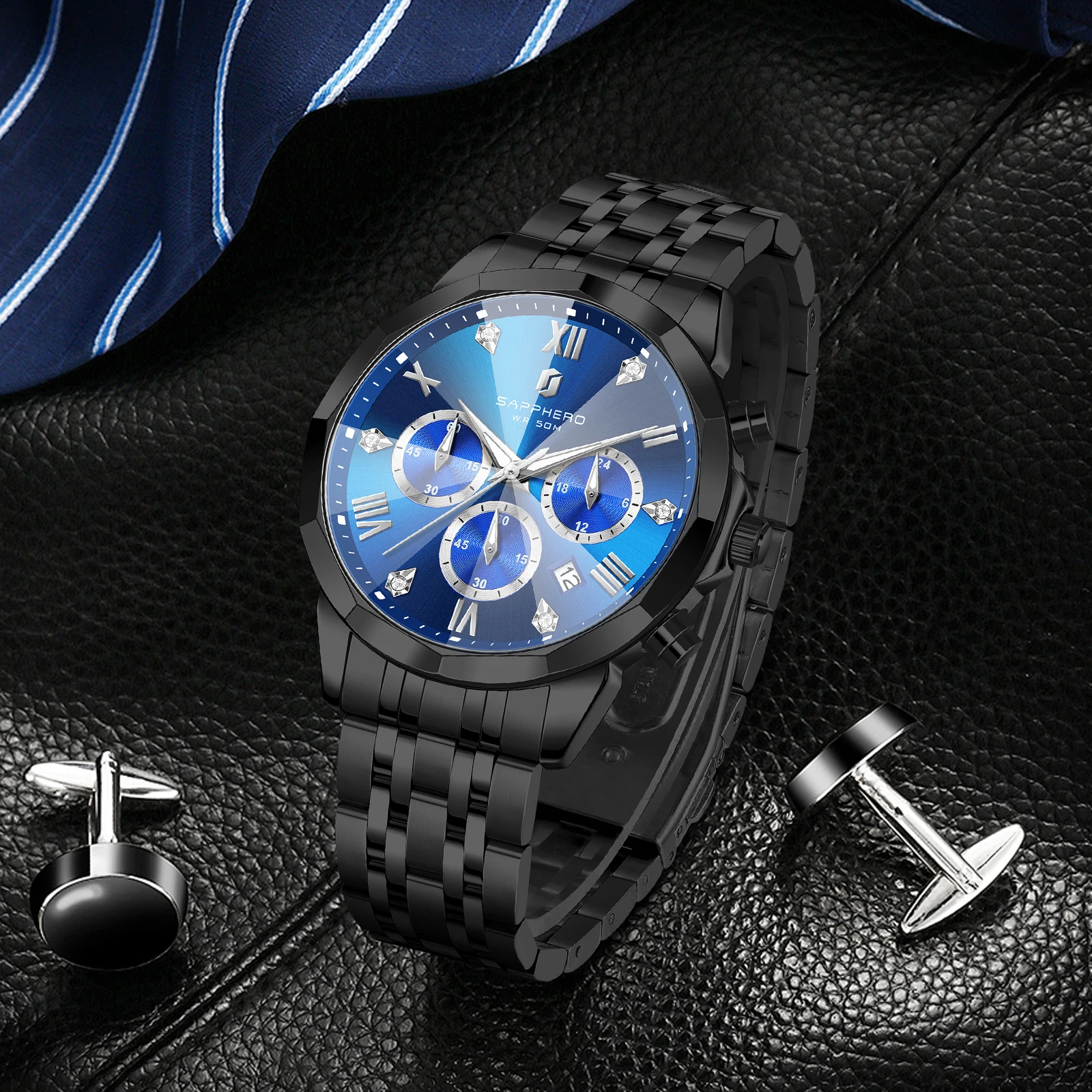 【Classic Men's Watch】Our SAPPHERO men's watch, with its classic shape and stylish dial, exudes visual impact and refined elegance.