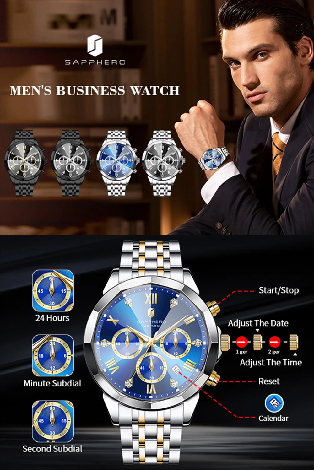 【UNIQUE GIFT FOR MEN】Our SAPPHERO waterproof watch is suitable for a variety of occasions, from daily office work to casual outings and formal events, and is a true expression of taste and style.